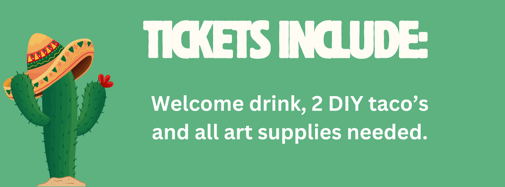 Your R230 ticket includes a welcome drink, two tacos, and everything you need for the painting session.